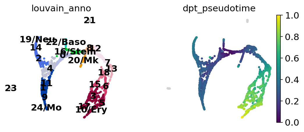 adata.uns["iroot"] = np.flatnonzero(adata.obs["louvain_anno"] == "16/Stem")[0]